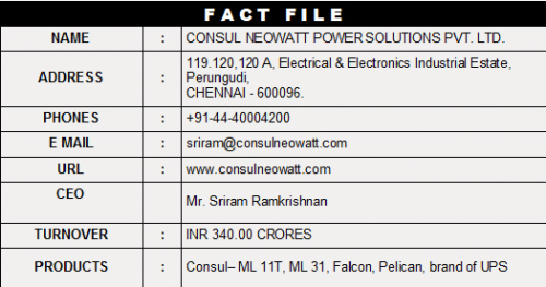 Consul Neowatt Power Solutions Pvt. Ltd., Chennai, are the proud